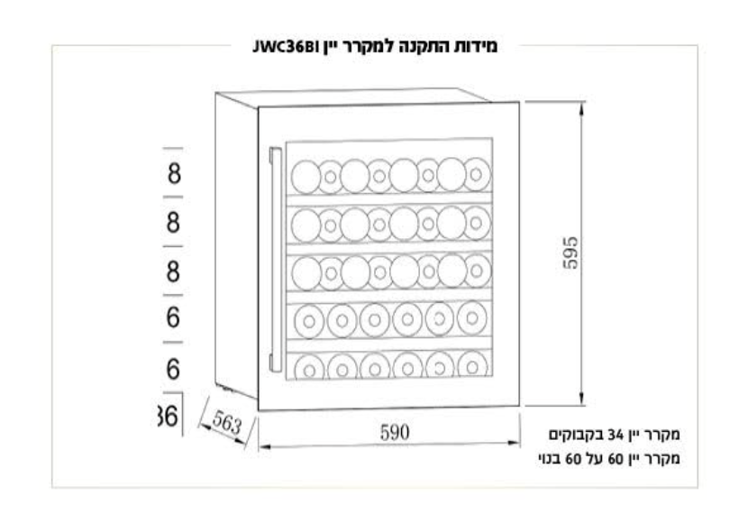 מקרר יין בנוי ברוחב 60 וגובה 60.