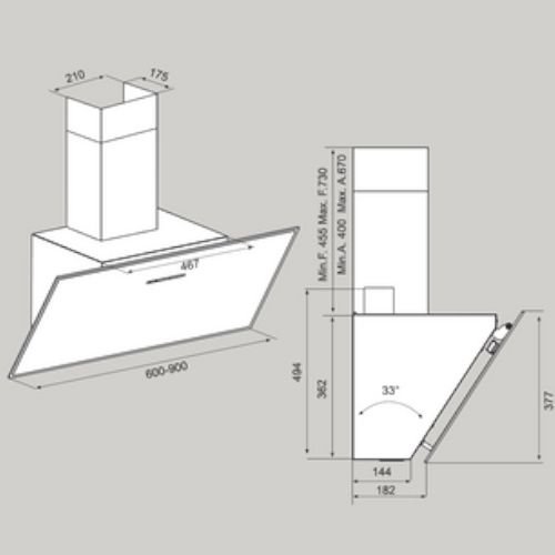 קולט אדים צמוד קיר 60 ס"מ מבית AIRFORCE איירפורס דגם F203-60